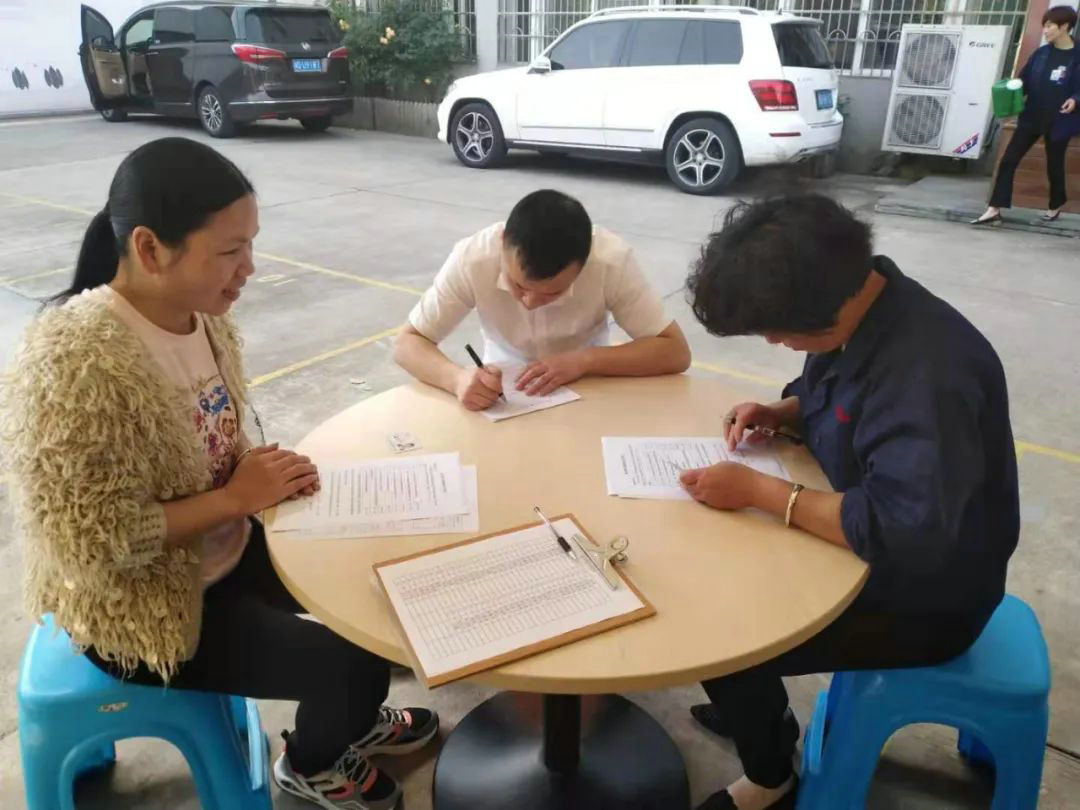 ?图为公司志愿献血员工填表现场