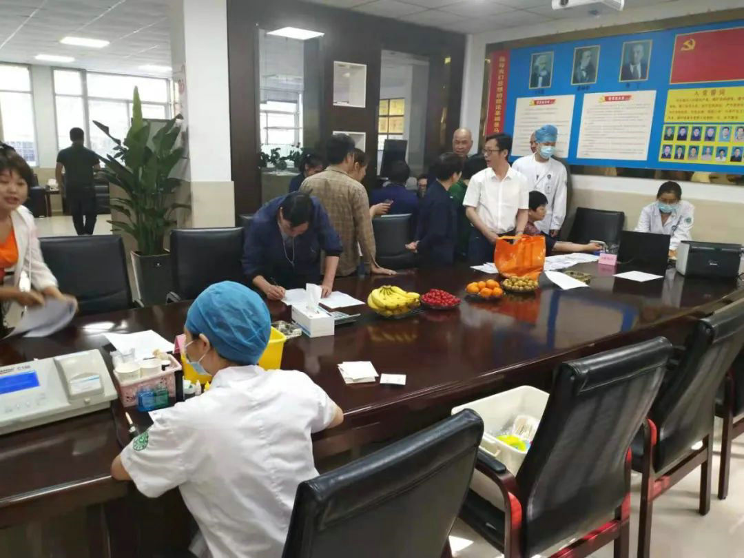 图为公司志愿献血员工抽血化验检验现场